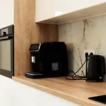 Een ingerichte kitchenette met een oven en een vaatwasser is beschikbaar voor gasten om in te dineren. PKS bushalte is op een klein stukje lopen van dit appartement.
